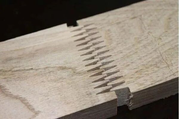 在选择大芯板时,一定要锯开一角,检查里面的质量。里面拼接的小木条,其缝隙不能超过5mm,不能使用带有树皮、蛀孔和死结的木材。质量较好的大芯板,其中的小木条之间,都有锯齿形的榫口相衔接。